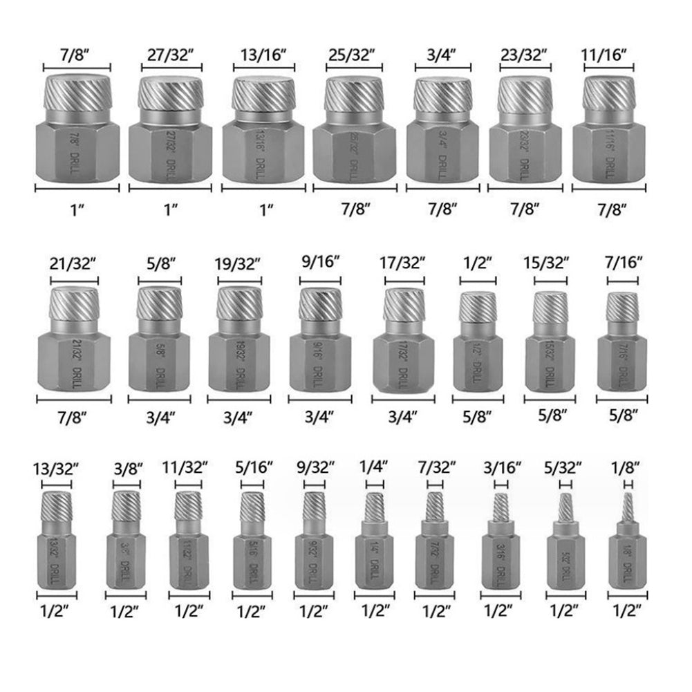 Versatilidad total: Incluye 25 piezas de diferentes tamaños y estilos, ideales para trabajar con una amplia variedad de tuercas y tornillos dañados o desgastados.