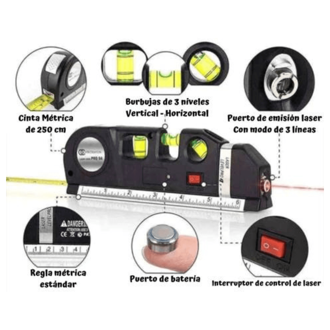 ¡4 EN 1! 3 NIVELES DE LÁSER, BURBUJAS, REGLA Y CINTA MÉTRICA