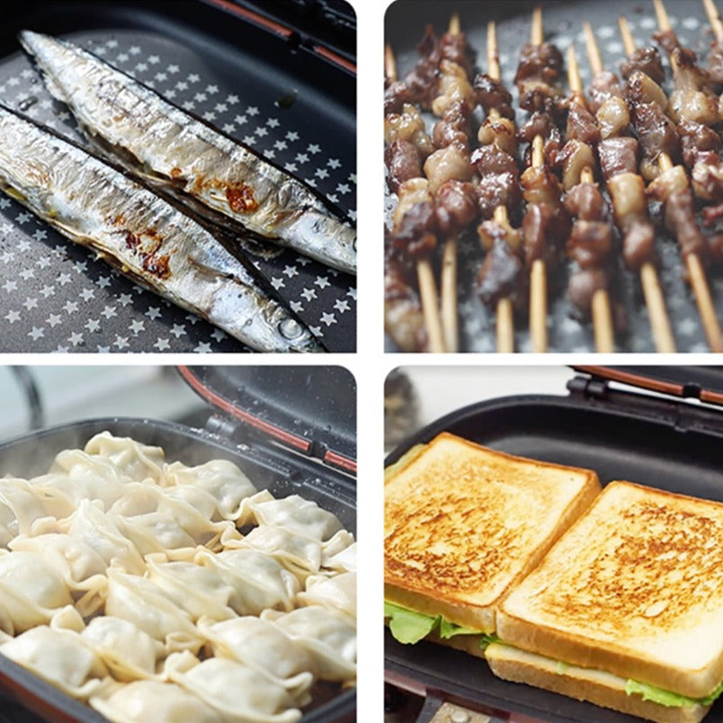 Ambos lados distribuyen el calor proporcionalmente, cocinando a la perfección. Puedes cocinar todo tipo de alimentos: carne, pescado, verduras, huevos, tortitas y mucho más.